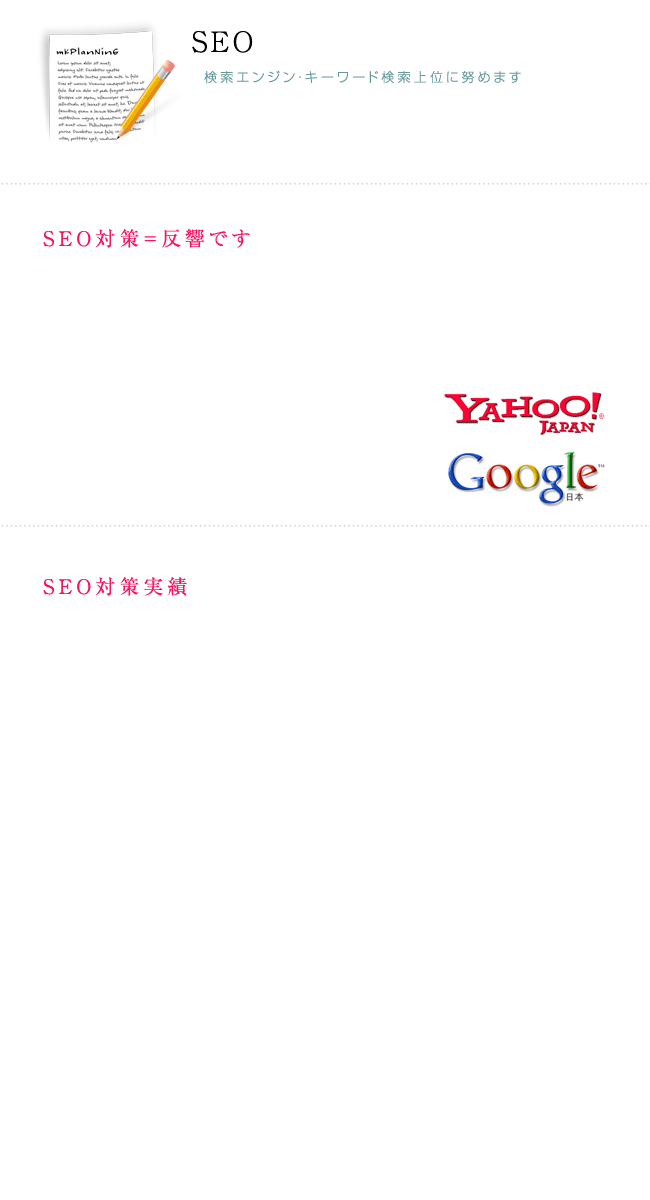 Yahoo!やGoogleなどの検索エンジンで意図するキーワードを入力したときに上位表示させるSEO対策